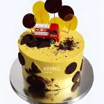 Желтый торт мальчику на 8 лет с печеньем орео и машинкой