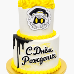 Желтый торт с персонажем Син из сериала Murder Drones