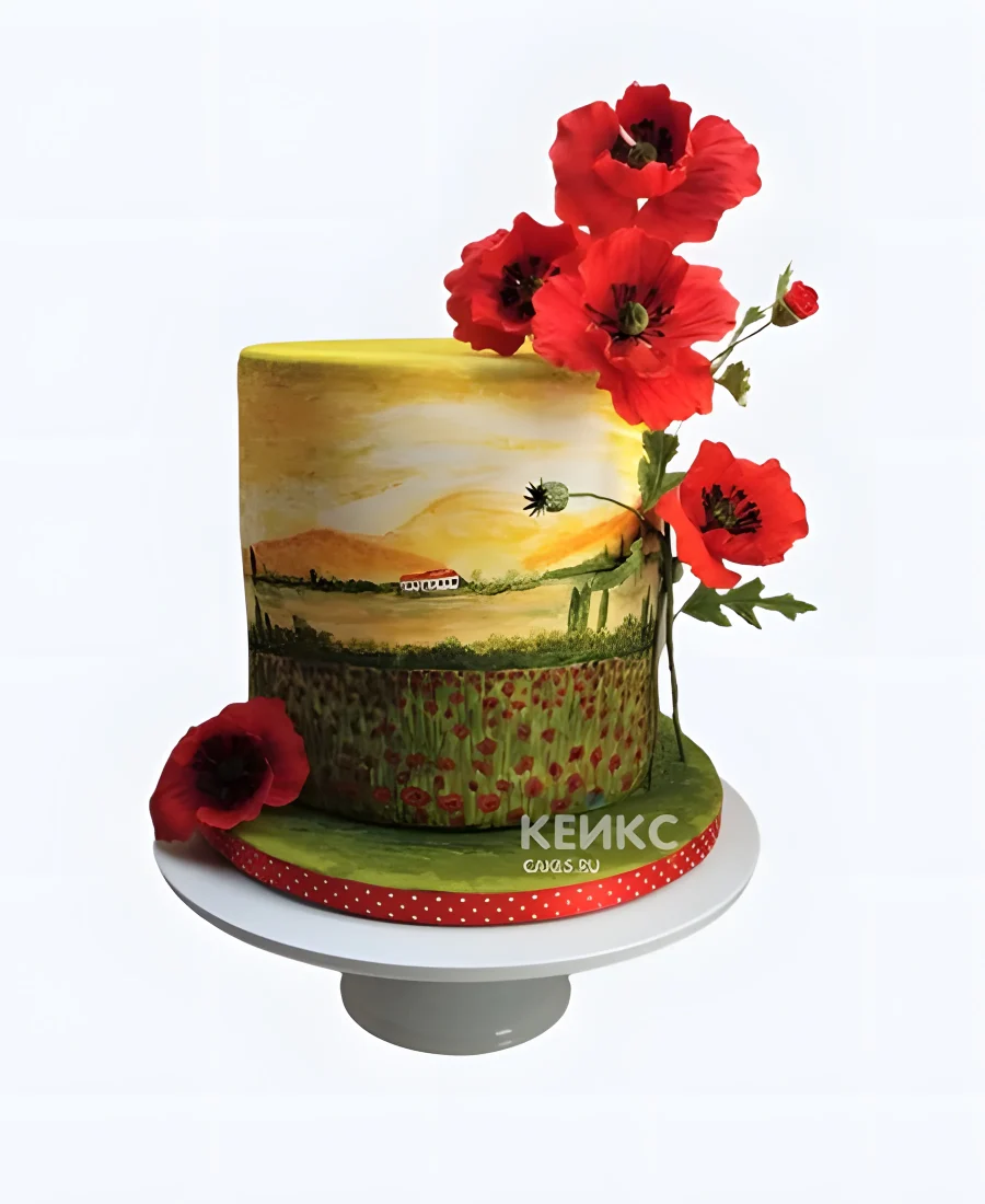 Живописный торт с маками и фотопечатью
