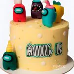 Жёлтый торт с предателем и игроками по Among Us