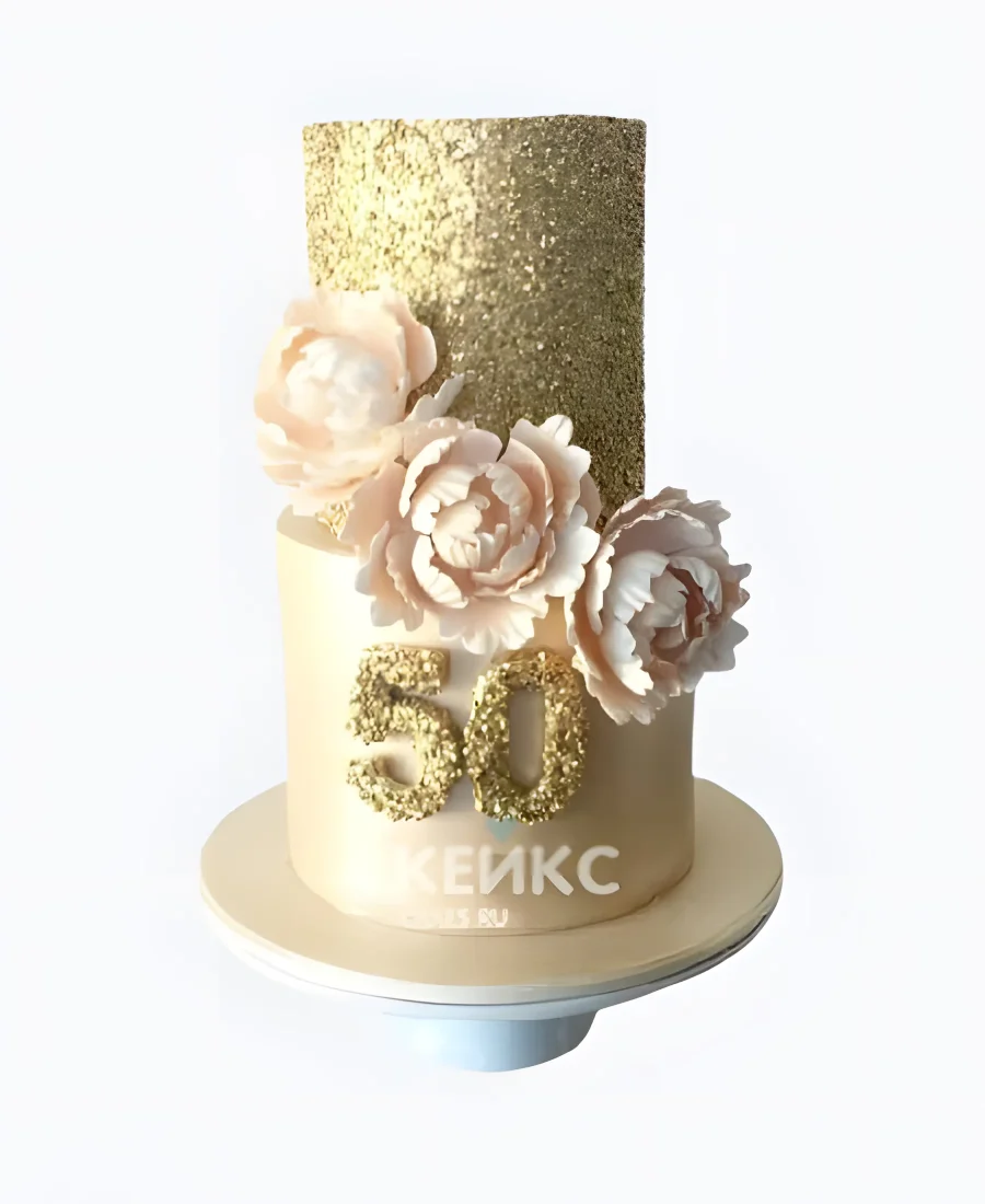 Золотой изящный торт женщине на 50 лет